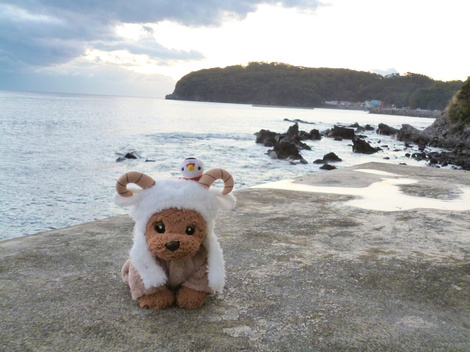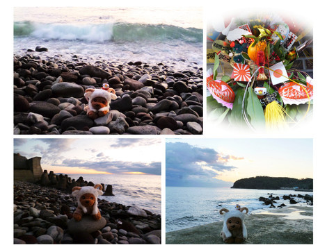 今年の初日の出は おっきな雲の層におおわれて日の出みれなかったんだ。そして 波が凄い!! くらちゃ~ん あがっておいで! 波にのまれちゃうよ。でも 今はいいお天気♪ 今日は はれ!みんなが にこにこ笑顔でいられる一年になりますように~☆