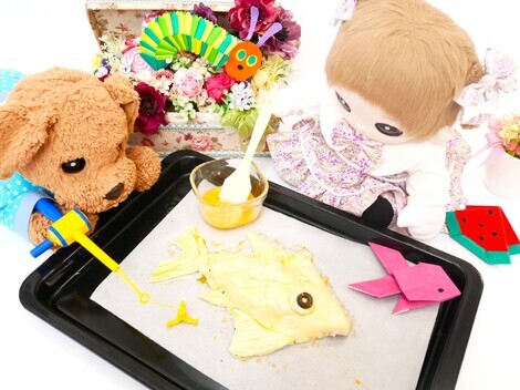てまちゃんが おでかけしちゃったので くらちゃんとふたりで なにやら 魚? 造形苦手のさくらちゃんが 珍しい。 やけに 尻尾やひれがリアルなんだけど (笑) めずらしく こってるね。 お祝いには なにたべるの?って きかれたから ケーキでしょ。 薔薇でしょ。 あと お赤飯とか 尾頭付きの魚?って こたえたら こうなった。めっちゃ うなってるなっておもって のぞいたら あは (^^;) 姉妹って大変なのよね。 はりあってしまった。