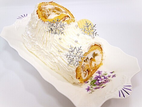 生クリームをぬって 北海道のすまえながさんがすみそうな 白樺の木風にしたかったんだけど。。。