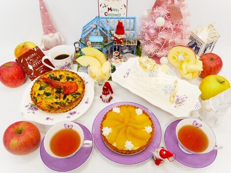 こりんちゃん&虎白のおねえさんがとどけてくれた スペシャルな珈琲に 紅茶部 コロ太くんの紅茶棚からえらんできた紅茶に hijinのおねさんが キッシュ大好き! ってしってから がんばってきた 鮭とほうれん草のキッシュを このたび パーティー用に 🦐も のせてみたら めちゃ 豪華にみえるぅ 1匹なのに(笑) あんじゅくんからの粉 ブッシュドノエルはしっかりと米粉で!👍 2種類のりんごをつかって おしみなく タルトとロールケーキ それらを だせるお店は もっちろん みつきのおねえさんより みんなからとどく愛を すこしづつ すこしづつだけど 目にみえる形に! やってみたかったこと おもっていたこと を 形にできるようになっていく自分がなんか 凄いって ありがとうを 形に変えてみました。 おいしいっていってもらえるように💝 今年のクリスマスは平日なので その前後の土日でも いいので みんな 姿見せてね。 今日はなにつくろうかな? うふふ。 やっぱり クリスマスといったら あれ! だよね。🐔🐮🍓 👍