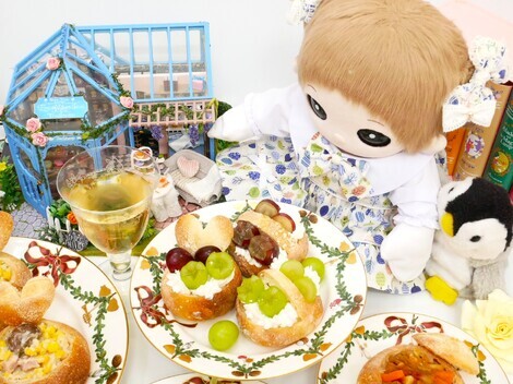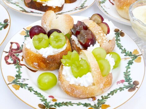 わ~い みてみて わかるかな? まんまるのハードパンがね バスケットになっているの。 そして 蓋が♡ハートなの。それでもって 葡萄が お花の飾り切り。 フルーツハンター部の4姉妹が毎年おいしいフルーツをさしいれてくれるので なので お礼の気持ちをこめて 学園長が こっそりと もりつけしてくれました。 目の前に かわいいパンがあったら つくってみたくなちゃうじゃないのって。かわいぃ。そ・れ・と いちおう 母 なので たまには いいとこ みせなくちゃ(笑)だって