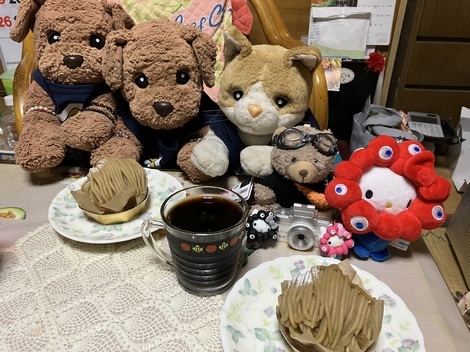 お留守番してくれていた、Kuuちゃんとキティちゃんに、お土産にケーキ買って
