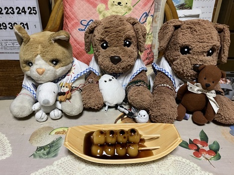 中秋の名月の日、お団子食べて、夜はしっかり綺麗なお月様を拝んだよ♬