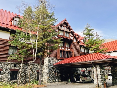 箱をあけると上高地帝国ホテルの赤いお屋根が飛び出してきてびっくり❣️