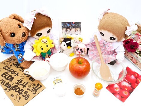 フルーツハンター部総括♡ ルル一族ファミリーからのおおきなおおきなりんごをつかって シナモンが香る生地にあふれるほどのりんごを混ぜ込んで 体もあたたまる 冬の季節には もってこいの あれ! つくるよ! あんじゅくんからのちょっとセレブなお粉と ウルちゃん達からのりんご そして新作! さあ がんばるぞ!