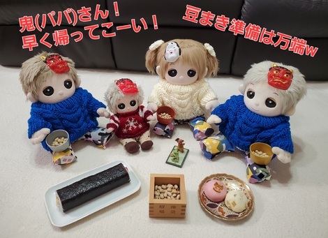 今日は節分。鬼(パパ)さんの帰りを待つボク達は準備万端!みんな一緒にお豆をまきまきしよう~♪…っと学園を覗いたら…最高に可愛い虎柄スイーツ発見!いい!いい!これ!超欲しい!笑新しい制服もフワフワあったか♪まだまだ寒~いこの季節、❤️がほっこりしちゃうね!女の子チームのミルキーカラーも男の子チームのビビッドカラーも間違いなくママの大好物でした。被服室の皆さま、いつも本当にありがとうございます!またしてもばーばはめちゃくちゃ感動してましたよー笑今年も学園の皆さまに沢山の福が訪れますように🌠