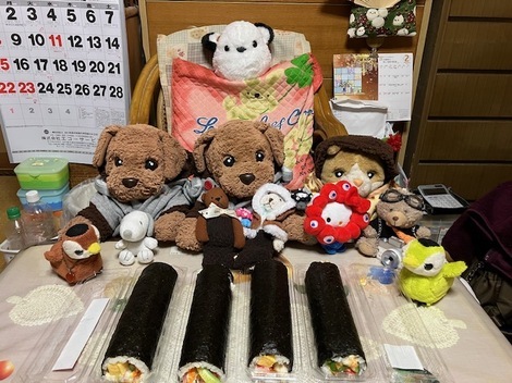 豆と飴は、お留守番してくれてた、チュンタ、エダマメくん、そして