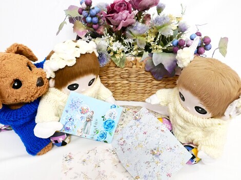 かりんちゃんと りんりんさんが 白い布からそめあげてくれた 学園長室にある バスケットをイメージにまぜながら。中央にいるおんなのこがもっているバスケットの中はなにかな なにかなって こんなイメージなのかな?って ちなみに さくらねえちゃんも髪の毛おろすとこのくらいあります。お店の中にやけたわよってこんな感じになのかな? それとも 虎白のおねえさんがこんな感じなのかなって 想像しながら。すてきなコラージュをどうもありがとうございます♡