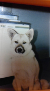 この子は阪神大震災の時に迷い子であの年の元旦に仔犬を産み地震後に心配で仔犬達と一緒に引き取りました。
