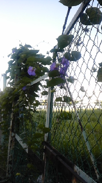 今日、お昼に近くで朝顔が咲き乱れてました〜もっと咲いてたんやけどね全部、入らなかった