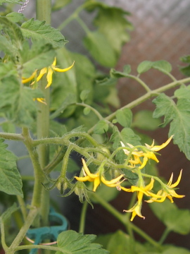 同じトマトでも微妙に違うようで、ももこは小さいけれど、多くの実をたくさんつけ、凜々子は数は少ないながら、少し大き目の実をつけています。