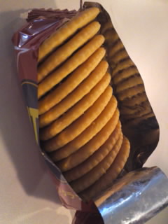 日が沈むころ、昼食も消化されて小腹が減ってきませんか?そんな時の常連、「リッツ」クラッカーです。この一袋がちょうどよい量なんです。