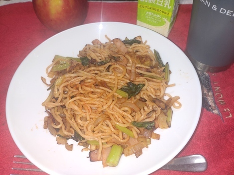 先日の昼食にゆで麺のナポリタンパスタ作りましたよ。美味しかったです。