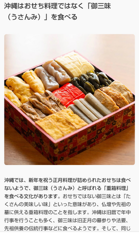 あと、沖縄独自の重箱料理を食べる家庭もあります…