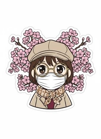 生成AIで私の写真、イラストにしてみたのですがまだ昔の痩せていた頃です。地元の別の神社⛩️に初詣に行ったときかな。お花は桜🌸か梅かなー、微妙ですね、(笑)