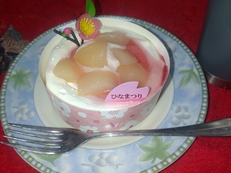 先日の🎎ひな祭り、桃の節句の日に食べた桃🍑の🎂です。
