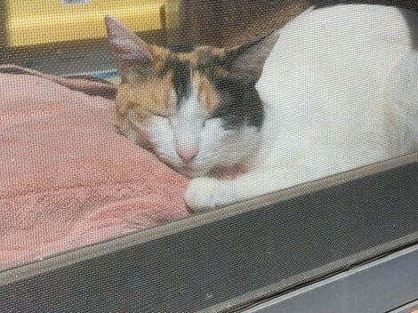 午前中、草抜きをしていましたら、マリさんは日向ぼっこしながら寝ていました。