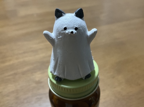 こんばんは~ビノさん、にゃんこお化け? すごく小さなお人形さんですか?何かの蓋に乗っていますね。さて~我が家は、ただいま家の塗装をしています。昨日足場を組み、今日は水洗い。1日中大きな音がして、マリさんはおびえっぱなしでした。ストレスで、何かがおきないといいのですが・・・10月もよろしくお願いします(^▽^)/
