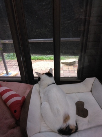 おはようございますヾ(´ω`=´ω`)ノ毎朝きてくれる、鳥達もよく見えません。それでも、マリさんはここが、好きです(^ー^)