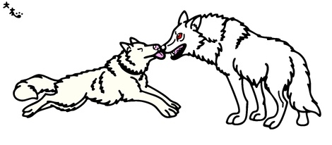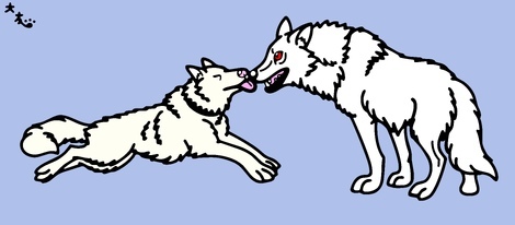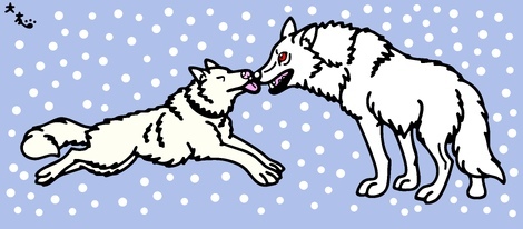 先日編集完了の戸川幸夫先生布教用作品、「オーロラの下で」より狩りで重傷を負った母犬のダームカを心配する息子オオカミ犬のブランの図です🐾本当は流血版もあるんですが苦手な方も居られるかもしれないので自粛させて頂きます💦