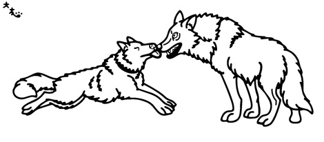 先日編集完了の戸川幸夫先生布教用作品、「オーロラの下で」より狩りで重傷を負った母犬のダームカを心配する息子オオカミ犬のブランの図です🐾
