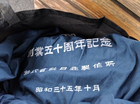 いま、埼玉に来ています。入間基地に近いので自衛隊機が飛んでいました。荷物を運びたいけど二階にバックを取りに行くのが面倒と思いました。そんな時、押し入れから母にもらった風呂敷がでてきました。創業50周年記念日立製作所昭和35年10月と、書いてありました。母は、日立で働いていた。風呂敷は、自由自在に形状を変えられるから便利です。包み方が、雑です。😅 -