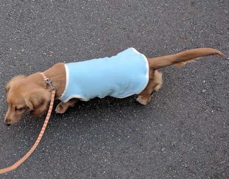 タンクトップが、できました。本来のパイピングの縫い方でやったので、すっきりとできあがりました。(ミシン目が、蛇行してない)