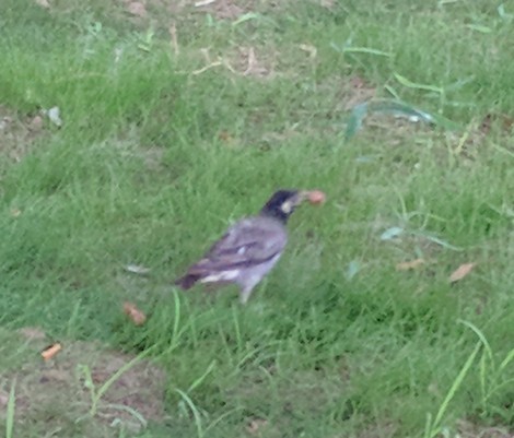 オナガも、木のずいぶん高い所にいました。ムクドリは、地面にいました。
