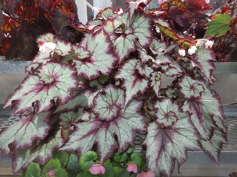 ベゴニア室です。↑大輪のベゴニアで、薔薇のように華やかです。↑木立ベゴニアです。↑葉の色が美しいです。
