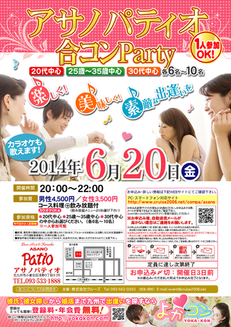 6月20日(金)第10回アサノパティオ合コンパーティー☆少人数年代別開催☆~一人参加・初参加大歓迎~