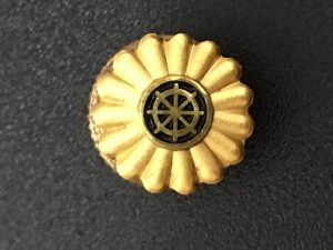 一般的に「海事代理士の徽章]と認識されている、菊の花弁の中央に舵輪をあしらった徽章は、一般社団法人日本海事代理士会に所属する海事代理士の会員章(バッジ)だそうです。
