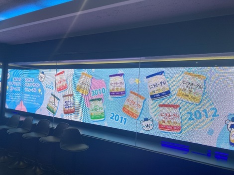 イベント会場の一面には歴代の「バニラヨーグルト」が表示されていました。