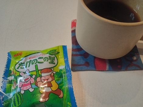 食後のコーヒーのお供は、たけのこの里(^^)✋