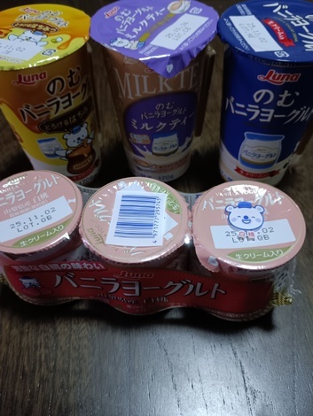 飲むバニラヨーグルトとろけるはちみつと飲むバニラヨーグルトミルクティー、バニラヨーグルト白桃見つけました。