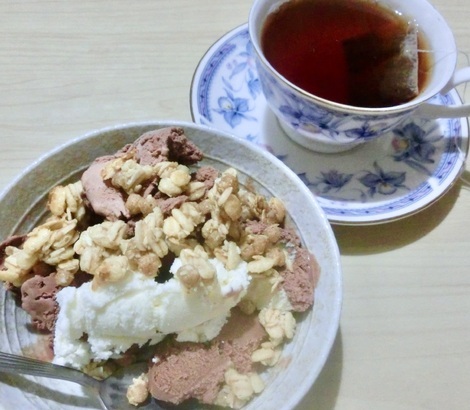 グラノラ+アイスを食べました。
