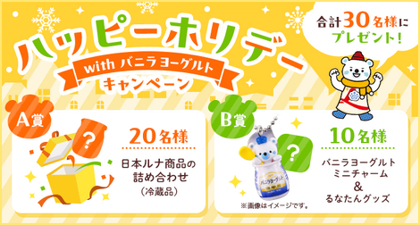 ただいま「バニラヨーグルト コミュニティ」では、<ハッピーホリデー with バニラヨーグルト キャンペーン>を実施中です!
