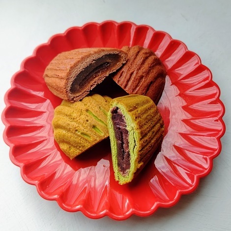 あんこの入った抹茶と黒糖のマドレーヌを食べました。