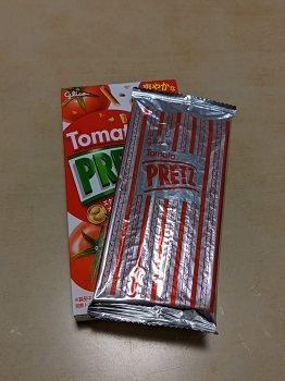 甘いのを食べたらしょっぱいのも食べたくなり、トマトプリッツ