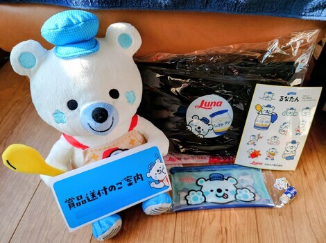 ハッピーホリデーwithバニラヨーグルトキャンペーンでバニラヨーグルトミニチャーム&るなたんグッズが当たりました!やったー嬉しい✨\(^o^)/我が家のるなたんと記念撮影しました!