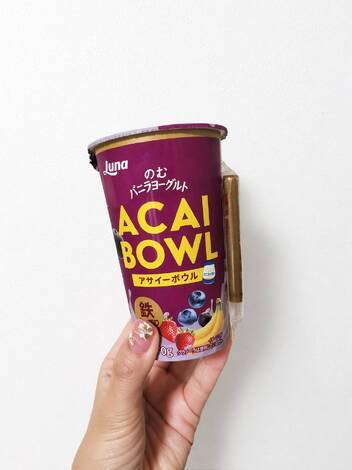 みなさん、こんにちは!「バニラヨーグルトコミュニティ」スタッフの月美です♪こちらは、この春発売の新商品<のむバニラヨーグルトアサイーボウル>を飲んだ感