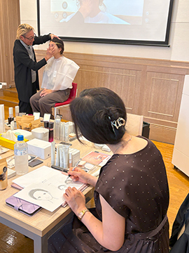 西村先生のレクチャーを受け、いよいよ、参加者のみなさんのメイク実習です!
