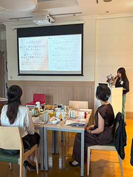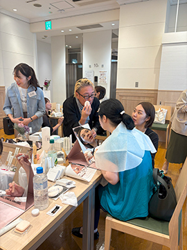 新ベースメイクアイテムの使い心地の良さ、仕上がりの美しさを体感いただく、メイクレクチャーがスタート。