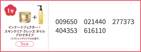 さて、本日はいよいよ、1等「インナーエフェクター+スキンクリア クレンズ オイル (レギュラーボトル) アロマタイプ リフレシングシトラスの香り」の当選発表を行います!