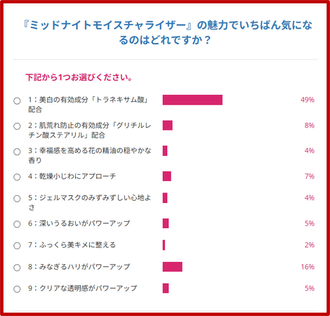 【結果発表】最新の『ミッドナイトモイスチャライザー』の魅力でいちばん気になるのはどれですか?