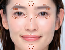 鼻や頬の高いところに乗せてます。