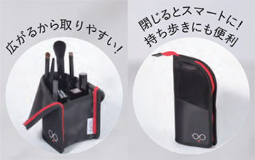 自立するポーチは、なんとブラシを立てたまま収納可能。旅行などでブラシを携帯したい時も、ポーチの中でブラシが傷んだり汚れたりする心配がありません。