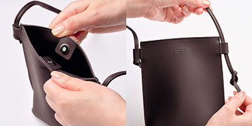磁気ホック付きで中身が飛び出しにくく、開閉もしやすいつくり。肩紐の長さは調節可能です。
