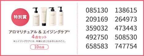 「アロマリチュアル&エイジングケア※4点セット」当選発表(10名様)