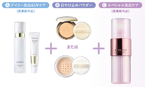 A【デイリー美白&UVケア】+B【日やけ止めパウダー】+C【スペシャル美白ケア】