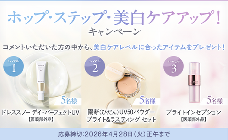 ホップ・ステップ・美白ケアアップ!キャンペーン☆あなたの美白ケアレベルをチェック!「2026年美白宣言」しましょ!☆